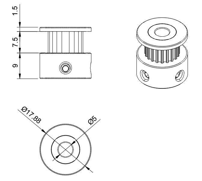 Fulie pentru ax de 5mm cu 20 de dinti folosita pentru curele GT2.