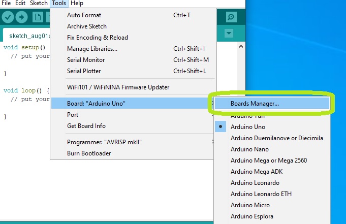 Accesati "Tools->Board->Boards Manager".
