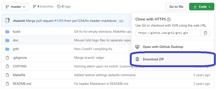 - Descarcati grbl-master de la urmatoarea adresa: https://github.com/grbl/grbl