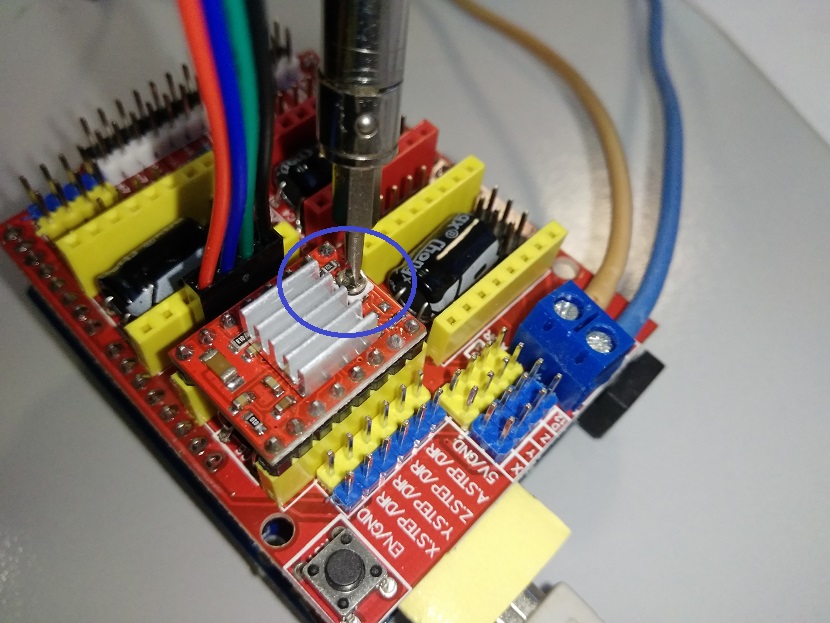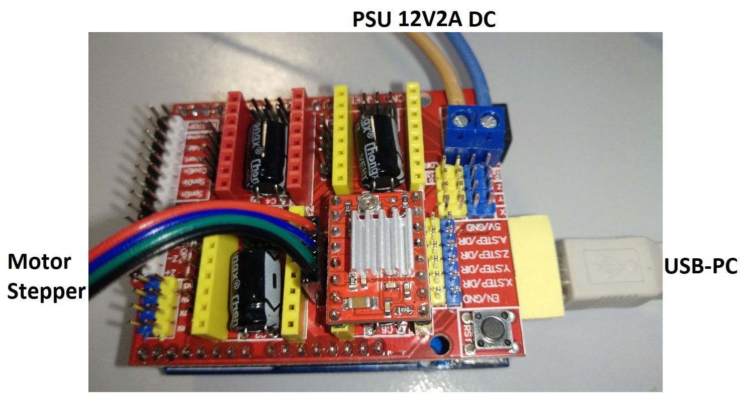 - Rulati codul prin apasarea butonului Begin si reglati potentiometrul de pe Driverul pentru motor pas cu pas in timpul functionarii la o valoarea scazuta pentru a evita supraincalzirea motorului.
